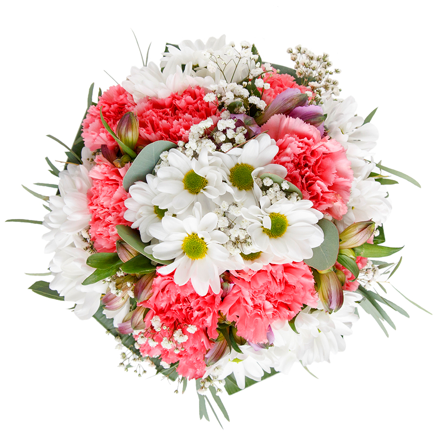 Discover our stunning bouquet, crafted to captivate hearts with a gentle blend of white chrysanthemums, whimsical gypsophila, and charming light pink carnations, accented beautifully by fresh aspidistra leaves. Each bloom is hand-selected for optimal vibrancy and longevity, ensuring a sensory experience that delights.